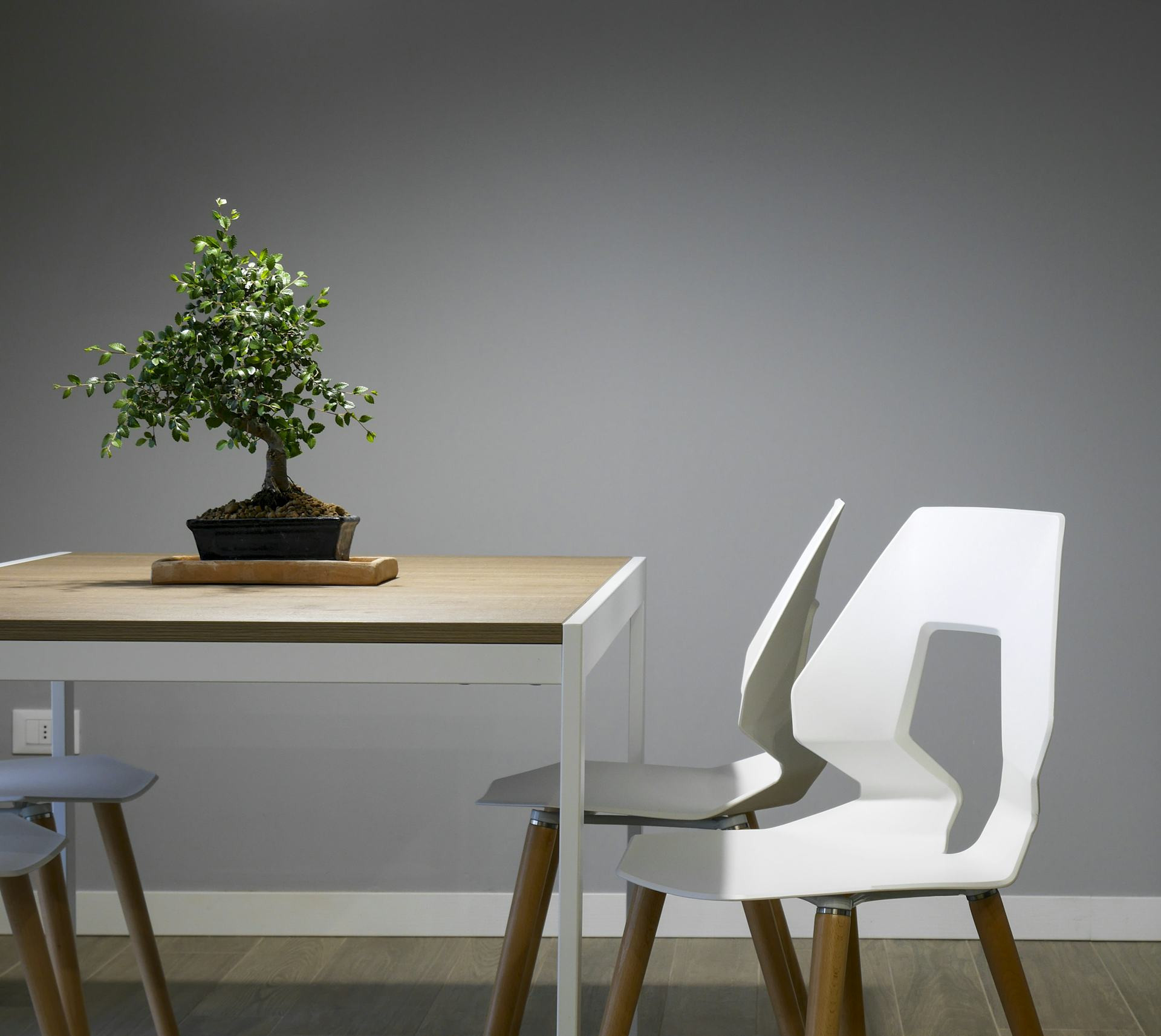 - Træ og natursten bringer varme og taktilitet ind i designet – en kontrast til de glatte overflader.